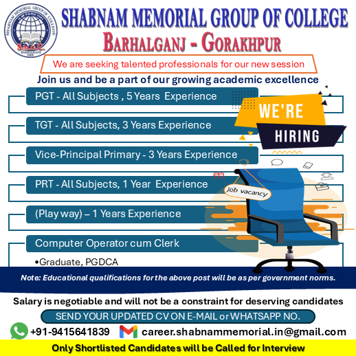 Shabnam Memorial Inter College is one of the Best Schools in Chillupar, Barhalganj - Gorakhpur, believes in holistic education for your child, encompassing academics, character building, co-curricular activities, sports education and life skills learning.
