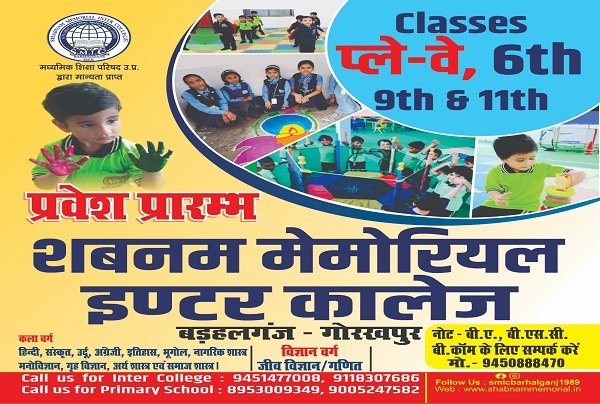 Shabnam Memorial Inter College is one of the Best Schools in Chillupar, Barhalganj - Gorakhpur, believes in holistic education for your child, encompassing academics, character building, co-curricular activities, sports education and life skills learning.